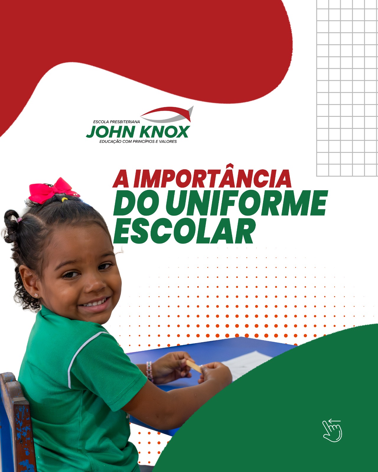 Leia mais>>Na Escola John Knox, buscamos oferecer uma educação que vai além do ensino tradicional. Priorizamos o desenvolvimento integral dos nossos alunos, estimulando sua criatividade, pensamento crítico e habilidades socioemocionais. Com uma abordagem pedagógica inovadora, infraestrutura moderna e um corpo docente altamente qualificado, garantimos um ambiente de aprendizado acolhedor e dinâmico, onde cada estudante é desafiado a alcançar seu potencial máximo. Nosso compromisso é formar cidadãos conscientes e preparados para os desafios do futuro.